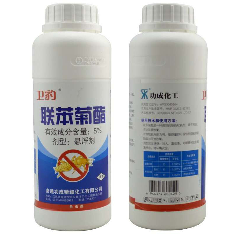 名稱:衛(wèi)豹聯(lián)苯菊酯 有效成分含量:5% 劑型:懸浮劑 凈重量:500克/瓶;20瓶/箱 毒性:低毒 防治對象:白蟻 應(yīng)用范圍:用于木材、堤壩、建筑物及周邊土壤防治白蟻。